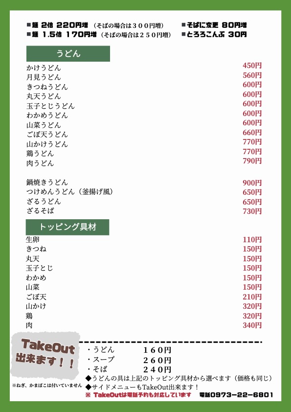 ※テイクアウト可 電話でテイクアウト予約も受けています
